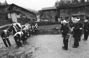 懷著對“度戒”的好奇和向往,從1月1日開始,盤文儀和其他 “受戒者”一道經歷了起法名、請師傅、豎刀梯等十多天的緊張準備。之后,在師傅的帶領下,連續三天三夜馬不停蹄地進行了封齋、架龍門、掛神像、接香、接圣、請圣、點大羅明燈、游兵等儀式。同時,通過聽師傅頌讀經文,接受了族史、族規、禮儀、道德等傳統教儀,還經歷了上刀梯、抓燒紅的犁頭、踩燒紅的磚頭等考驗,最終成功過關。