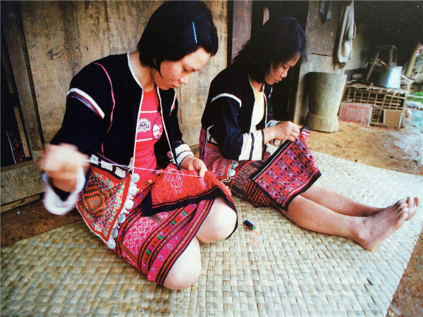 繡”是指黎族婦女用彩色線在棉、麻等布料上繡制出各種圖案,或者在織錦圖案編織完成后,再進行補繡,提高圖案的效果。黎族織錦的主體圖案一般都是刺繡的,主體圖案中的若干局部都要靠刺繡來完成。