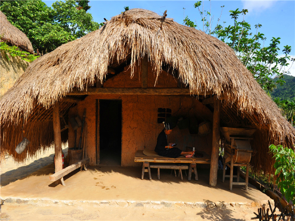 船形屋有高腳船形屋與矮腳(落地式)船形屋之分,外形像船篷,呈拱形。船形屋的建筑特點是,平面呈縱長方形,兩端山墻設入口,屋蓋一般是半圓拱形,房屋的輪廓像是一條倒扣的帆船。這類房屋不設窗戶,只從兩端開門,前面有一個陽臺,置一個樓梯供上下,進門后整個“船”身分為三節,像三個艙,各有小門相通,第一節是“廳”,設有閣樓,存放糧食與雜物、家什等;第二節是臥室,除了放床以外,還放火灶,作為蒸酒或烤火之用;第三節面積最小,開一個后門,是每天舂米和放置生產工具、雞窩的地方。