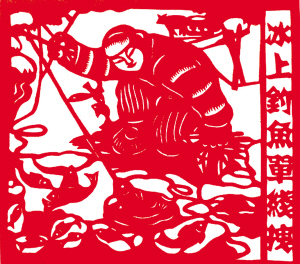 此外,撫順滿族剪紙在畫面上還經常結合滿文,使不同的人物、情節都凝固于畫面,豐富了作品的敘事內容。這種圖文并茂的剪紙造型,也是其一大亮點。