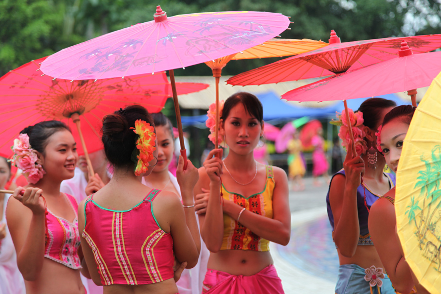 傣族新年。時在傣歷六月二十四到二十六日(夏歷四月中旬),節期三、五天。節日清晨,男女老幼沐浴更衣,到佛寺賧佛,即給佛像灑清水洗塵,然后互相潑水,除疾消災。后演為以潑水為戲的節日。相傳,古有火魔無惡不作,搶走7個姑娘。最年輕的姑娘儂香,得知了殺死火魔的秘密:拔下它的頭發把它勒死。魔頭成一團火球,落在哪里,哪里就起火。姑娘們即挑水相潑,滅了邪火。此傳說相沿成習,漸成潑水節。一說此俗源于印度,婆羅門教徒每年此時到河中沐浴,洗去罪惡;年邁者不能下河,子女便為其潑水洗罪。后傳入中國傣族地區。