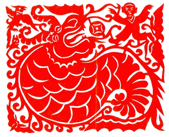 苗族民間剪紙的獨特之處還表現在構思的新穎奇妙上。如《姜央兄妹合磨成親》圖,藝人為了擴大意境,打破了時間與空間的限制,把發生在不同時間與空間的事物描繪在一幅畫面上。作者大膽而巧妙地把畫面分成天空、山頂和山腳三部分,來表現三個不同的情節。天上飛的是蝴蝶和山雞,山頂上站著拍手叫好的姜央,山腳下站著姜央的妹妹以及已合上了的石磨,還有被從山頂上滾下來的石磨嚇驚了的野兔。這幅畫面生動形象地描繪了洪水泛濫后,地上的人都被淹死了,姜央和妹妹藏在葫蘆中幸免于難,為了繁衍人類,兄妹只好成親等情節,非常巧妙地使這一遠古傳說得到精致的再現。又如三接式袖花剪紙圖案,畫面中間是雙象斗獸,上方是人馴蠶身龍,下面是龍象相爭,其余空處是魚鳥蟲蝶。這種奇特的構思,把原始社會人與自然的關系表現得淋漓盡致。