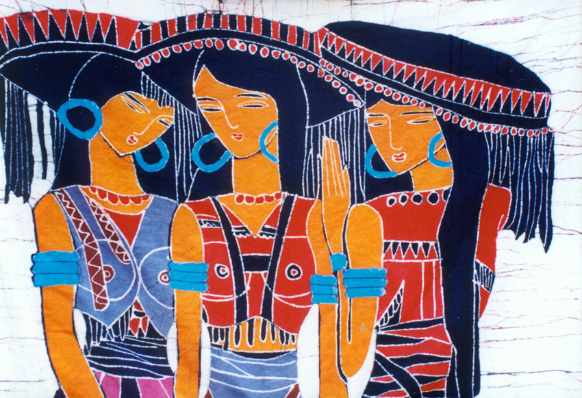蠟染是貴州省丹寨縣、安順縣、織金縣苗族世代傳承的傳統技藝。 丹寨縣、安順縣及織金縣是以苗族為主體的多民族聚居區,在長期與外界隔絕的艱苦環境中,這里的居民逐漸形成了自給自足的生活方式,古老的蠟染技藝因此得以保留下來。按苗族習俗,所有的女性都有義務傳承蠟染技藝,每位母親都必須教會自己的女兒制作蠟染。所以苗族女性自幼便學習這一技藝,她們自己栽靛植棉、紡紗織布、畫蠟挑秀、浸染剪裁,代代傳承。在此狀況下,這些苗族聚居區形成了以蠟染藝術為主導的衣飾裝束(以上三照片由劉軍提供)。
