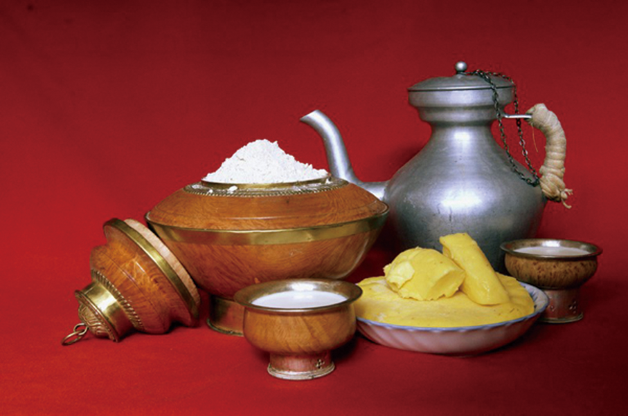 藏族地處高海拔地區,在特殊的環境下形成了特殊的食材和飲食習俗。藏族的主要食品是青稞糌粑、牛羊肉和奶制品。這些都是藏區特有的食品。