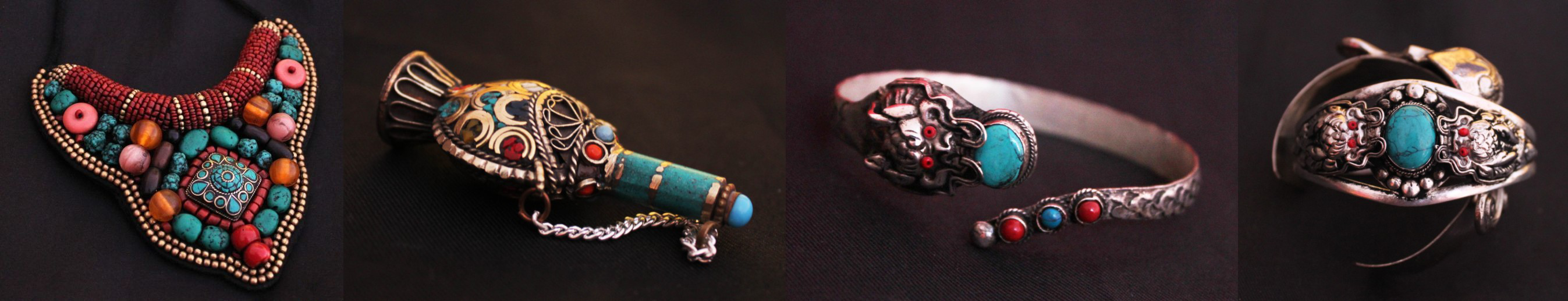 天然石頭、珊瑚、動物骨頭、白銀是制作藏飾的主要原料,就是這些平實的材料,粗糙的外表卻有精致的內涵。細小的花紋、鏤刻、鑲嵌,都巧妙地形式藏飾的設計風格,并散發出濃烈的古、土味。所有藏飾均是手工完成,好多藏飾是喇嘛在廟里打造出來的,每一件都是與眾不同。