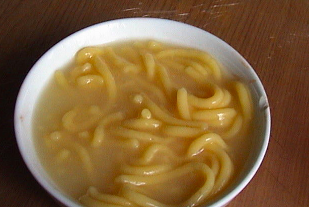 在夏季,滿族同胞喜食“酸湯子”,其制法是:用玉米發酵面團制成面條或面片,直接甩入湯鍋中制成。操作步驟是將玉米浸泡磨成水面,用布濾去渣滓,細面入缸發酵至微酸,然后從手指上戴的漏斗形湯套中擠出長條,下沸水鍋中稍煮,再盛入碗內。也可將發酵后的面團加糖攪成糊狀,用勺舀從鍋沿自然流入鍋中間,成牛舌狀,也稱牛舌餑餑。食用時略帶酸味,味美可口。