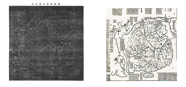唐代地理學家賈耽采用裴秀制圖法組織畫工繪制《海內華夷圖》,幅面約十平方丈,古今對照,雙色繪畫,注重少數民族部分,是巨幅唐代中國全圖。《進海內華夷圖及古今郡國縣道四夷述表》云:“唐臣聞地以博厚載物,萬國棋布;海以委輸環外,百蠻繡錯。中夏則五服九州,殊俗則七戎六狄,普天之下,莫非王臣。” 宋代《華夷圖》被簡化成縱橫各約80厘米,刻于《禹跡圖》背面;圖上不畫方格,有山脈、河流、長城和各州的名稱,其位置大體與實際相近。山脈用人字形表示,河流為單曲線;河流名稱注記在河源處,囊括眾多異族名稱。西安碑林博物館這塊作為印刷用的兩面刻有地圖的石版,是中國現存最早的石版地圖。唐代巨幅彩繪《海內華夷圖》和宋代石刻《華夷圖》不僅標志著中世紀中國制圖學上最高成就,而且是中國多民族國家的象征。
