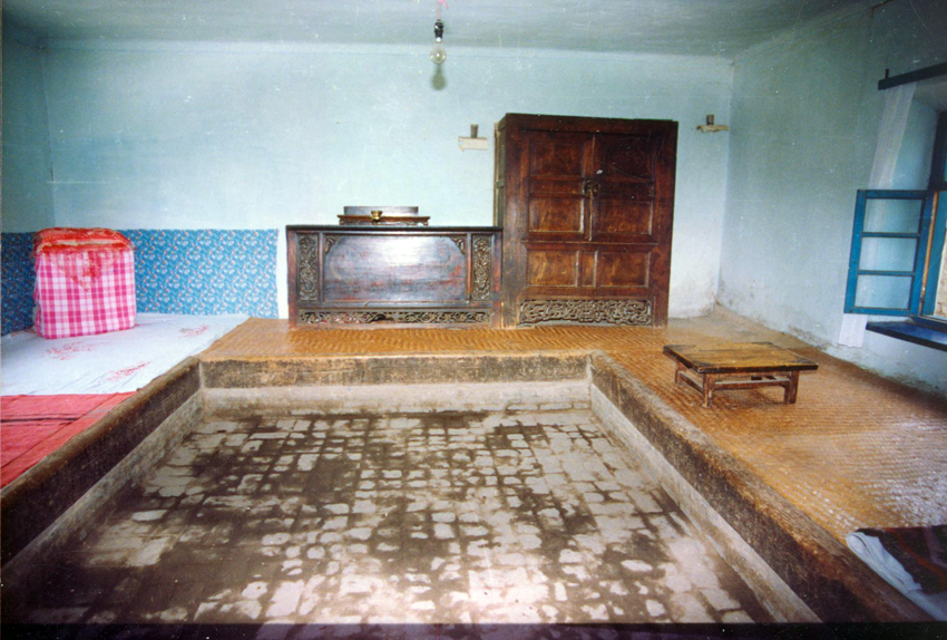 錫伯族生活在高緯度地區,冬季低溫嚴寒,因此錫伯人家多會在室內建造火炕,火炕高60—70厘米,造法很特殊,由五個煙道組成,煙道互相連通。新中國成立前后,隨著房屋形式的改革,大炕也被改造,漸漸只打一面炕(或南或北,以北為多)。 炕上又放有特制的長方形木具稱之為“吉伯渾塔圖庫”(被柜或炕柜)。房屋的中間屋子有個過道,過道里屋是廚房,筑有兩個鍋臺。鍋臺比里屋內的炕低,連著鍋臺修有小炕,炕和鍋臺中間隔有30厘米左右高的“古堆”(小隔墻)。