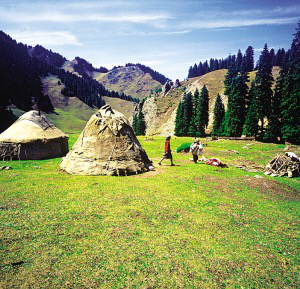 新疆維吾爾自治區木壘縣大南溝牧場上的氈房