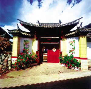 束河、沙河古村鎮到處都是納西族的田園式庭院。大門的裝飾與圍墻和屋脊的裝飾相呼應,庭院里種了許多植物,高的果樹,矮的花草,就像一個小花園,和田間彌漫著的野薔薇都散發著令人陶醉的幽香。