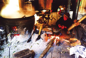 二層為生活起居場所。壯家人的火塘,是一家人炊煮就餐、烤火取暖之處。現在即使用上了沼氣和電器的家庭也離不開火塘