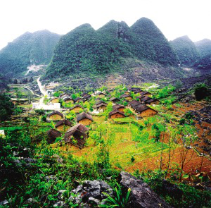 廣西百色地區那坡縣村落。村寨多隨地形與山勢,布局自由分散,既不存在縱橫軸線,也沒有明顯的村寨邊界。受地形影響,村寨規模一般不大