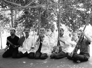 夏季的喀什,空氣中涌動著濕潤的氣息。這個玉石一般潤滑的綠洲一派生機。在老城夯土滄桑的背影中,一陣憂傷的琴聲在城市上空回蕩,古老的《十二木卡姆》剎那間奏響耳邊。回味著剛才的琴聲,感覺就是它——沙它爾,只有它的憂傷才會讓木卡姆如此動人心弦。