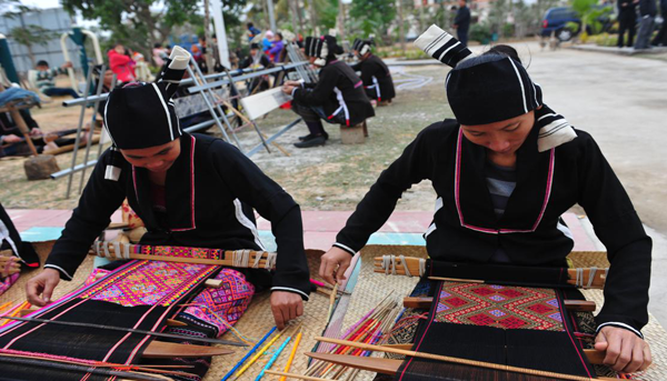 紡織也是黎族地區(qū)副業(yè)生產(chǎn)之一,紡織原料的來源,主要靠野生植物纖維,如木棉和各種野麻等,其次是以漢區(qū)或者向漢商買來的色線和色布,將其拆線使用。婦女們一般都能紡織男子上衣、吊儋和女子上衣、筒裙、胸掛、頭巾以及麻被等。筒裙和頭巾一般紡織精美,色澤巡禮、花紋精美。筒裙上的花紋,多為動物紋或者植物紋,也有少數(shù)人物紋或用具花紋。由于紡織品多產(chǎn)于民間,沒有專門的機(jī)構(gòu)和組織,所紡織的成品,都是在不脫離農(nóng)業(yè)生產(chǎn)勞動的條件下單獨進(jìn)行的,所以效率很低。據(jù)調(diào)查,織一塊吊儋需要十天,一塊頭巾十天,一件無袖男子上衣四十天,一條麻被一年(長近四米,寬二點四米),紡織品一般均為自用,極少出售或者交換。