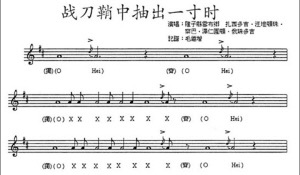 由作者毛繼增記譜的伯諧歌曲曲譜(部分)