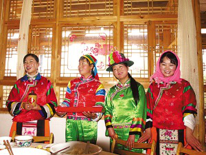 隨著時代的更替,土族女性的服飾發生了很大變化,有的傳統服飾已消失,有的服飾經過推陳出新,重放光彩。如舊時的繡花高領,如今變成直翻兩用領;蓋在“扭達”上的長頭巾——“扭達爾秀巾”,變成了今日土族女性使用的短頭巾。現今,廣大土族女性,不僅喜穿本民族服飾,而且還愛著時尚服飾,她們或使土族服飾時裝化,或使時裝土族服飾化,豐富了土族的服飾文化。