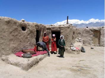 塔吉克族的房屋一般為土木結(jié)構(gòu)正方形的平屋頂,塔吉克語叫做“藍(lán)蓋力”。塔吉克族的房屋雖然沒有窗戶,但屋頂中央都會開有天窗。