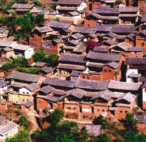 古城的村鎮(zhèn)入口處都有幾棵枝繁葉茂的大榕樹(shù),村內(nèi)尚存仍在使用的古老水井。道路通達(dá)四方,民居互相毗連,沿街巷修建,每院的墻角與對(duì)方的墻角錯(cuò)讓。從蒼山流下的小溪穿村而過(guò),巷巷流水潺潺,家家種樹(shù)養(yǎng)花,真可謂“村旁綠樹(shù)繞清流,園中桃李結(jié)碩果,院內(nèi)蘭桂飄幽香”。