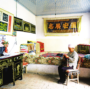 甘肅東鄉族自治縣達橋鎮陳家村磚雕和木雕結合的大門