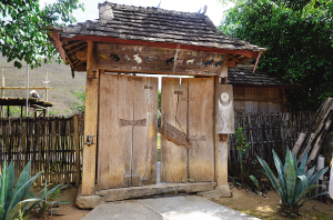 位于云南省西雙版納傣族自治州景洪市嘎灑鎮新寨村的新寨村史館,是一座展現哈尼族傳統文化的小型村史館。該館矗立在寨子邊緣處,是一棟具有哈尼族特色的建筑。院子的門楣上刻著十二生肖,門上的插銷是一塊木板,一伸手就能取下,十分古樸。