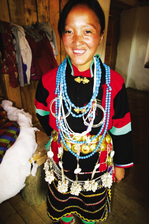 穿上珞巴族婦女傳統服飾的群宗喜上眉梢