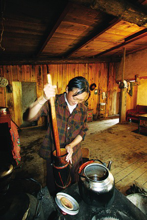 受藏族生活方式的影響,珞巴族平時也喝酥油茶