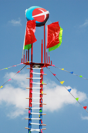 2011年,緬甸傈僳學會在密支那舉辦了第一屆世界傈僳闊時節,第一次將十幾米高的弩弓木雕作為會徽。該木雕高高聳立于密支那郊區闊時節會場,還有印有傈僳族徽的紅旗插滿會場四周,高高飄揚,與巨型木雕相互輝映,構成了一個以弩弓木雕為核心,族徽紅旗環繞的闊時節會場空間。其內其外,傈僳族空間與非傈僳族空間區隔明顯。