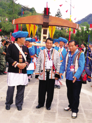 一場盛大的傈僳族節日聚會,背后的弩弓形象顯而易見。