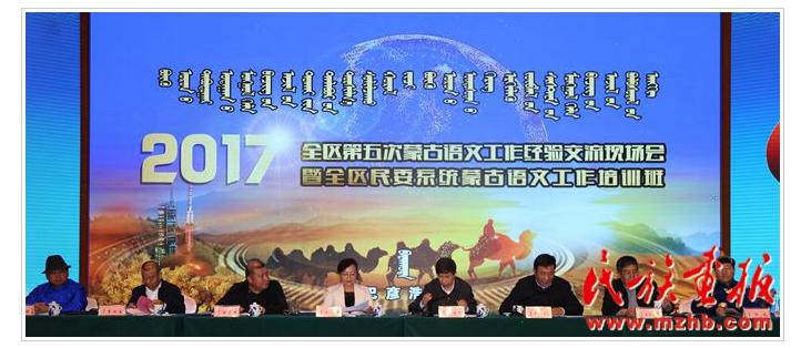 2017年11月28至29日,內(nèi)蒙古自治區(qū)第五次蒙古語(yǔ)文工作經(jīng)驗(yàn)交流現(xiàn)場(chǎng)會(huì)暨全區(qū)民委系統(tǒng)蒙古語(yǔ)文工作培訓(xùn)班在內(nèi)蒙古自治區(qū)阿拉善盟召開(kāi)