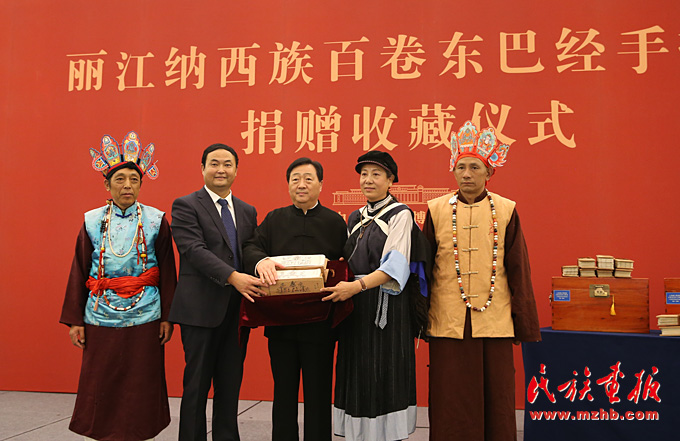 2017年12月7日上午,云南省麗江市委市政府向中國國家博物館捐贈《云南麗江納西族一百五十卷東巴經手抄本》及《納西東巴古籍譯注全集》(100卷)儀式在中國國家博物館舉辦。