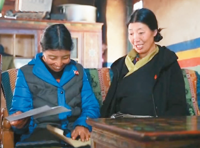 卓嘎、央宗姐妹十分激動地翻看習近平總書記的回信(央視截圖)
