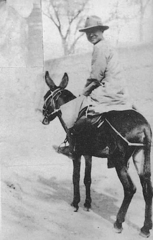晏陽初在定縣翟城村,毛驢是他固定的交通工具。資料圖片