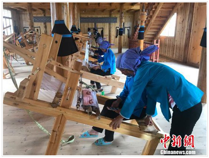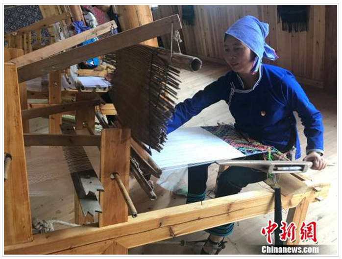 聽聞姐姐在這里織錦每月可拿到3000多元的收入,今年7月,此前在廣東務工的文坡村二組村民龍練霞干起了這份家門口的工作,再也不想外出了?!凹确奖阏疹櫦胰?,又可以抽空干點農事?!苯衲?0多歲的龍練霞說。和她一樣,看到侗錦的銷路慢慢打開了,村里許多在外務工的年輕人也紛紛返鄉,拾起祖輩們的老手藝。