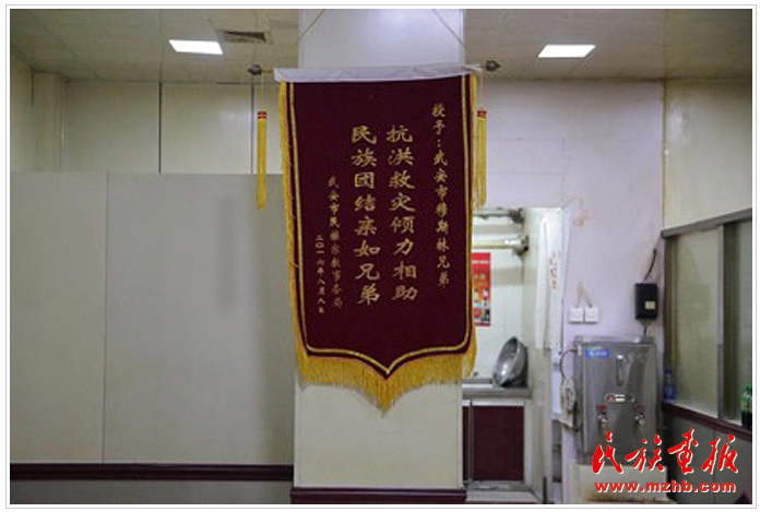 楊勇智在冒著熱氣的羊湯店中向記者回憶起了2016年7月19日那天武安爆發洪災的事情。當天他第一時間組織了周圍的群眾和穆斯林朋友們進行抗洪救援的事情還歷歷在目。他說,民族之間的團結在任何地方都是一股力量。為此,武安市民族宗教事務局對楊勇智的行為給予了極大的肯定,并將“抗洪救災傾力相助,民族團結親如兄弟”的錦旗贈予楊勇智和他的穆斯林朋友們。