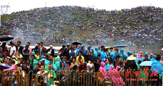一套傳統(tǒng)盛裝,光是金銀首飾就有十幾斤重,時(shí)價(jià)幾十萬元,是一個(gè)普通彝族家庭的重要財(cái)產(chǎn)。只要在火把節(jié)這樣的重要節(jié)日,才穿戴。臨近中午,火把場(chǎng)附近的觀眾已經(jīng)人山人海,黑壓壓一片,他們或與家人親戚在一起,或與朋友在一起,或站或坐,在草地上、山坡上,邊嘮家常邊欣賞激烈賽事,享受著他們的節(jié)日。