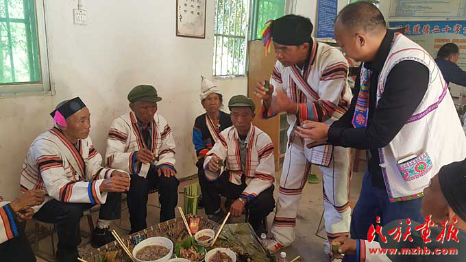 “過去過節,手頭拮據,經常是三五戶人家湊錢殺一頭豬。由于物質匱乏,節日前,男女老幼都上山挖野菜,殺豬當天,到地里砍芭蕉花,帶上柴火去寨老家里煮年飯吃,節日第三天去寨老家唱歌跳舞。” 記者聆聽著87歲基諾族老人周白講述基諾山寨的回憶。如今的他已是四世同堂,在耄耋之年能享受天倫之樂,過上幸福生活,他心存感激。節日當天老人們在村委會聚餐,席間接受年輕人的敬酒與祝福,其樂融融。