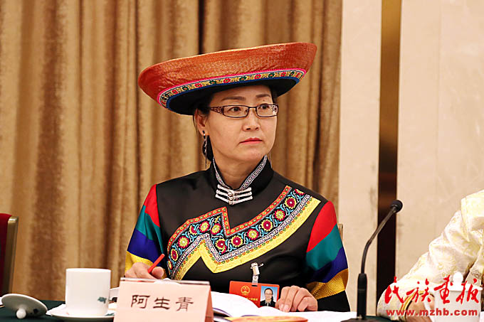 “頭戴織錦大圓帽,腰系花帶,身穿七彩袖的黑底長裙,阿生青作為人口較少民族土族的代表,這一身別致的服飾在十三屆全國人大一次會議青海團的代表中頗為亮眼。她來自青海省互助土族自治縣高寨鎮,2016年8月,習近平總書記曾到互助縣班彥村考察異地搬遷項目,班彥村因此變得有了名氣,作為高寨鎮副鎮長,她喜歡與別人分享這個村子的故事。事實上,班彥村只是當地扶貧攻堅中異地搬遷項目的樣板村,縣里諸多其他扶貧項目在近幾年也開始發力,生態旅游、特色產業、養殖扶貧等項目如今已經依托各村實際,發展得紅紅火火,土族百姓的好日子正在翻開嶄新的一頁。