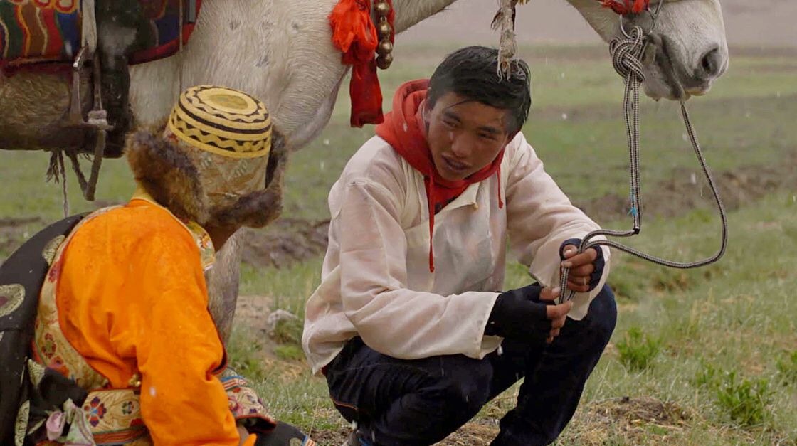 圖片說明:賽馬冠軍在雨中訓練兒子的騎術