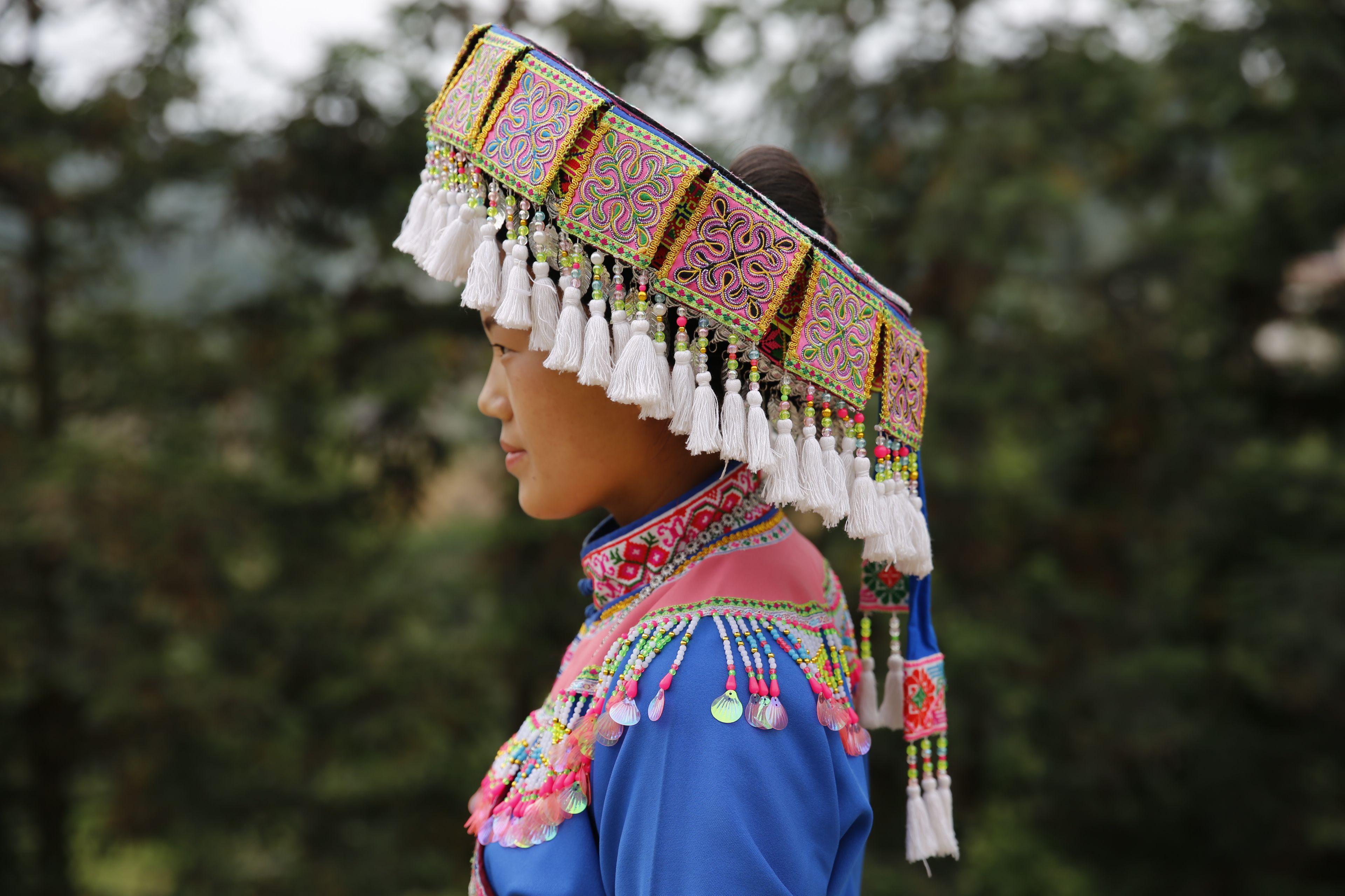 苗族女子服飾花帽周圍裝飾3