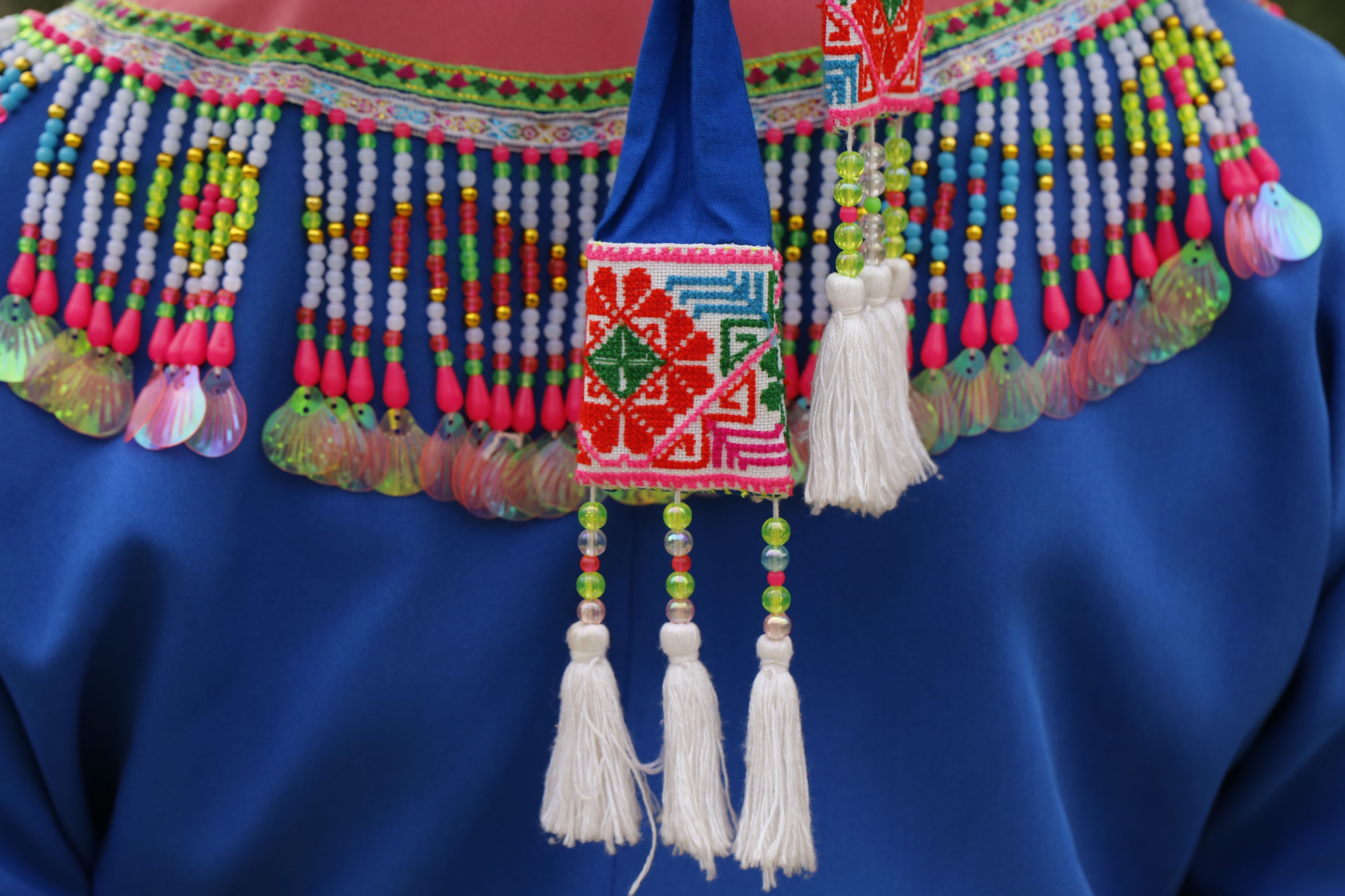苗族女子服飾花帽-背面繡花及裝飾