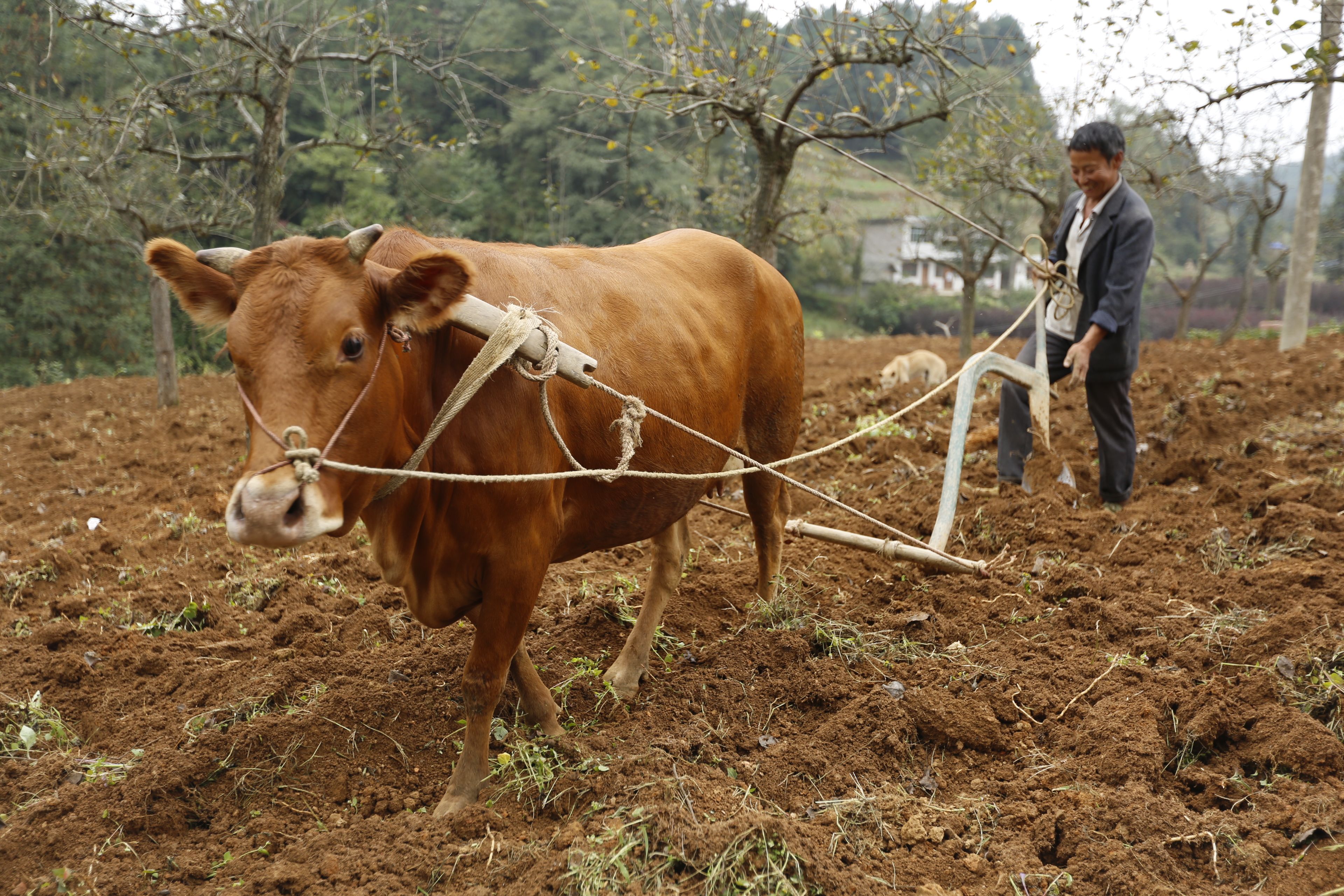 圖片說明:貴州貴陽苗族農作物種植-牛耕田