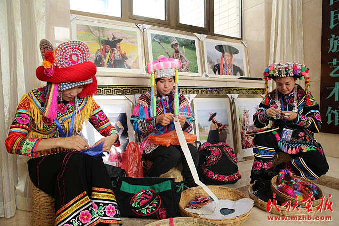 楚雄州彝族彝繡繡娘們現場展示彝繡技藝