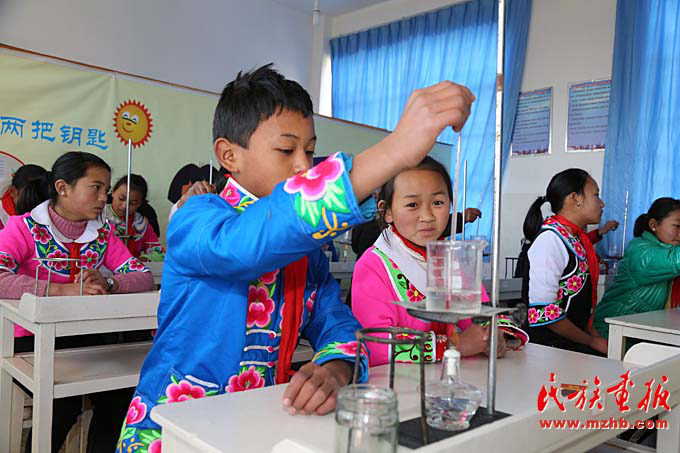 課堂上,李有順老師正在給三年級的孩子們上語文課。這里的語文課是雙語教學,孩子們不僅要學習漢語,還要學習簡單的彝文,實現雙語人才的培養。李老師告訴記者:“臘灣村是典型的民族聚居村,這里大部分群眾都是彝族,孩子們從生下來,家里使用的語言就是彝語。所以,我們從低年級開始,就要教孩子們如何使用彝族語言文字和漢語言文字,我們的授課基本上由彝族老師來承擔,必須懂得彝語,用彝漢雙語給孩子們上課。只有這樣才能引導孩子們從彝語環境逐漸向漢語環境轉換。”