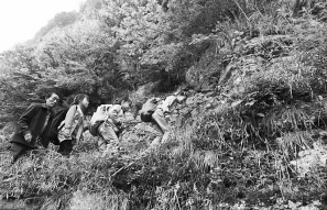 教師楊紹書和學生從新居前走過。歐東衢攝