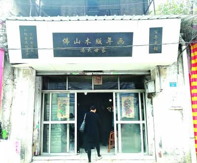 馮氏木版年畫鋪坐落于佛山禪城區一條幽深的老街普君南路,前身是馮炳棠的父親馮均于清末開設的“均記”木版年畫作坊。那個時候,在這條老街附近聚集著二三十家木版年畫的作坊和大量家庭加工戶,制木、雕版、刷制、調色、手繪開相、描金、填丹……作坊與作坊之間保持著嚴格的專業分工,且對于家族所傳承的獨到工序配方秘而不宣,只有各個作坊分工合作才能成就出各種題材樣式的年畫。