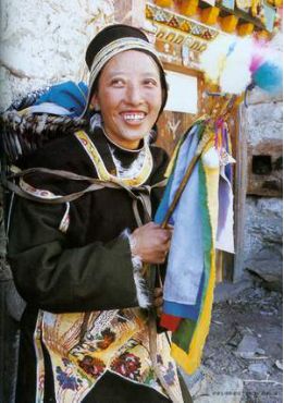 搬家的這天,家里人都要穿上節(jié)日盛裝。一大清早,家庭主婦身著藏裝,手捧象征五谷豐登的“切瑪”,喜氣洋洋去新家;走在主婦身邊的是家庭男主人,他手里提著青稞酒。當(dāng)然。隨著社會經(jīng)濟(jì)的發(fā)展和生活水平的提高,有許多藏族男子在喬遷新居時已經(jīng)是西裝革履;他們手里提的,也許會是啤酒。孩子們最喜歡家里有喜事,最喜歡辦喜事。也最喜歡熱鬧。在這種時候,他們身穿新藏裝,嘴里不停地吃著東西,幫家人提個燒水壺之類的東西。喬遷新居的喜慶充溢在全家人的臉上。