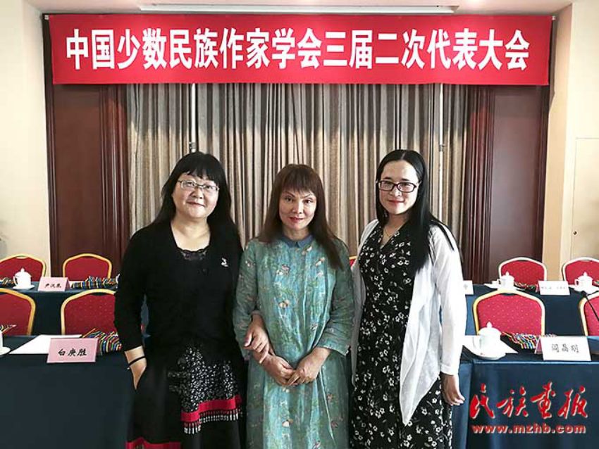 帕蒂古麗(中)出席中國少數民族作家學會第三屆二次代表大會