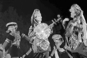 大型原生態歌舞“查姆”展演上,彝族演員在表演歌舞彈唱 秦萍供圖
