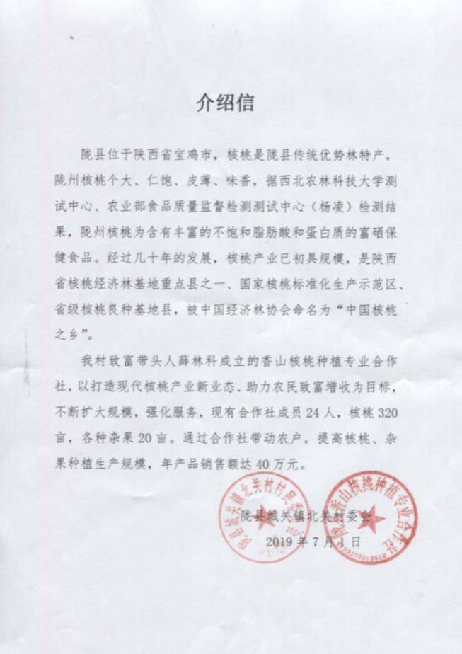 隴縣古稱隴州,因地處隴山東阪而得名,位于陜西省西陲。核桃是隴縣傳統優勢林特產之一,在我國核桃的10大產區中,隴縣地處陜西渭北、秦巴山地、甘肅天水和甘肅隴南等4大產區的中間地帶,屬于核桃的最佳優生核心區。隴縣核桃具有“個大、殼薄、隔少、仁飽、澀淡、油香”六大特色,據農業部食品質量監督檢測中心、西北農林科技大學測試中心檢測,隴州核桃硒含量達到0.0728毫克/公斤,遠高于一般核桃,是高標準、高質量的富硒保健食品,“隴州核桃”已取得國家農產品地理標志認證。隴州核桃種植歷史悠久,從夏商周時期開始就有記載.產業基礎雄厚,自然生態環境優越,生產的果品品質上乘而聞名全國。據《隴州新續志》記載,清宣統二年(1910年)已開始人工(種)植核桃,到60-70年代直播青皮核桃,80年代栽植地埂核桃,2002年以來連片栽植。
