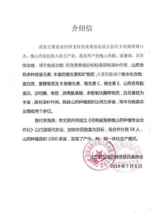 因?yàn)椤盎比龑殹钡男б婷黠@,合作社于2013年成立之初吸納社員102戶,種植面積達(dá)1000多畝。2014年5月,“槐三寶”商標(biāo)順利通過國家農(nóng)業(yè)部無公害農(nóng)產(chǎn)品認(rèn)證和無公害農(nóng)產(chǎn)品標(biāo)識使用權(quán),基地獲河南省農(nóng)業(yè)廳無公害農(nóng)產(chǎn)品產(chǎn)地認(rèn)定。發(fā)展到現(xiàn)目前,2019年,其種植面積已經(jīng)超過4000畝,產(chǎn)量在5500噸以上。據(jù)合作社監(jiān)事李文明講:“今年沒澇,現(xiàn)在七月,山藥快成熟了,可以預(yù)見,是個豐收年。”